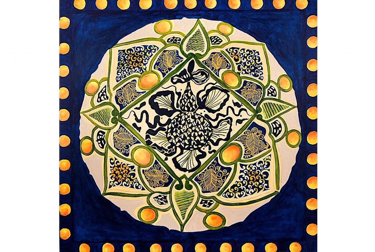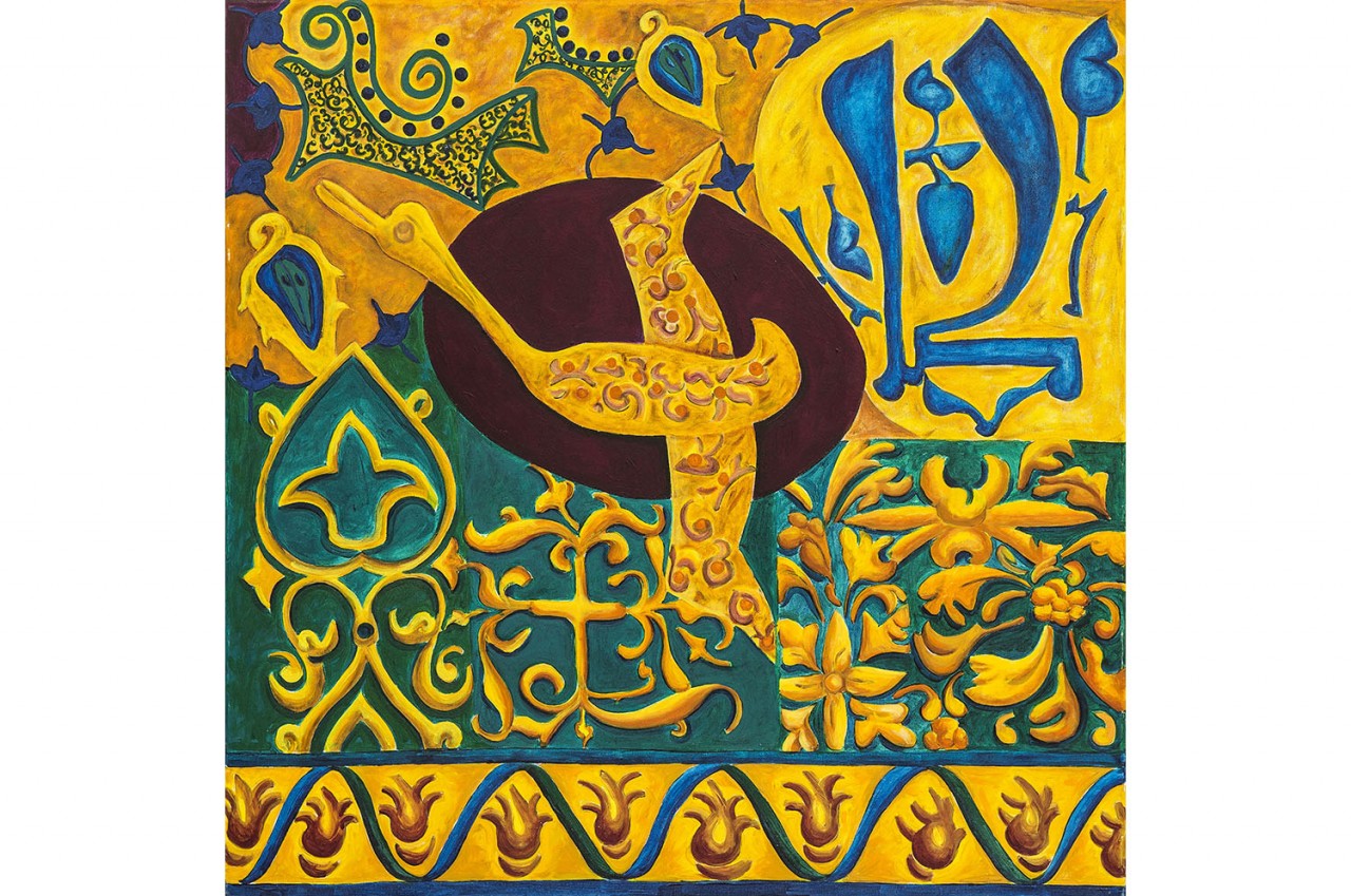 Toledo’s second Dubai exhibition in 2010 shows the artist’s sensibilities as a collector, and her love of porcelain and its patterns. Inspired by twelfth century Persian ceramics, these paintings play powerfully with scale: what is minute on porcelain is given a different dimension on canvas.