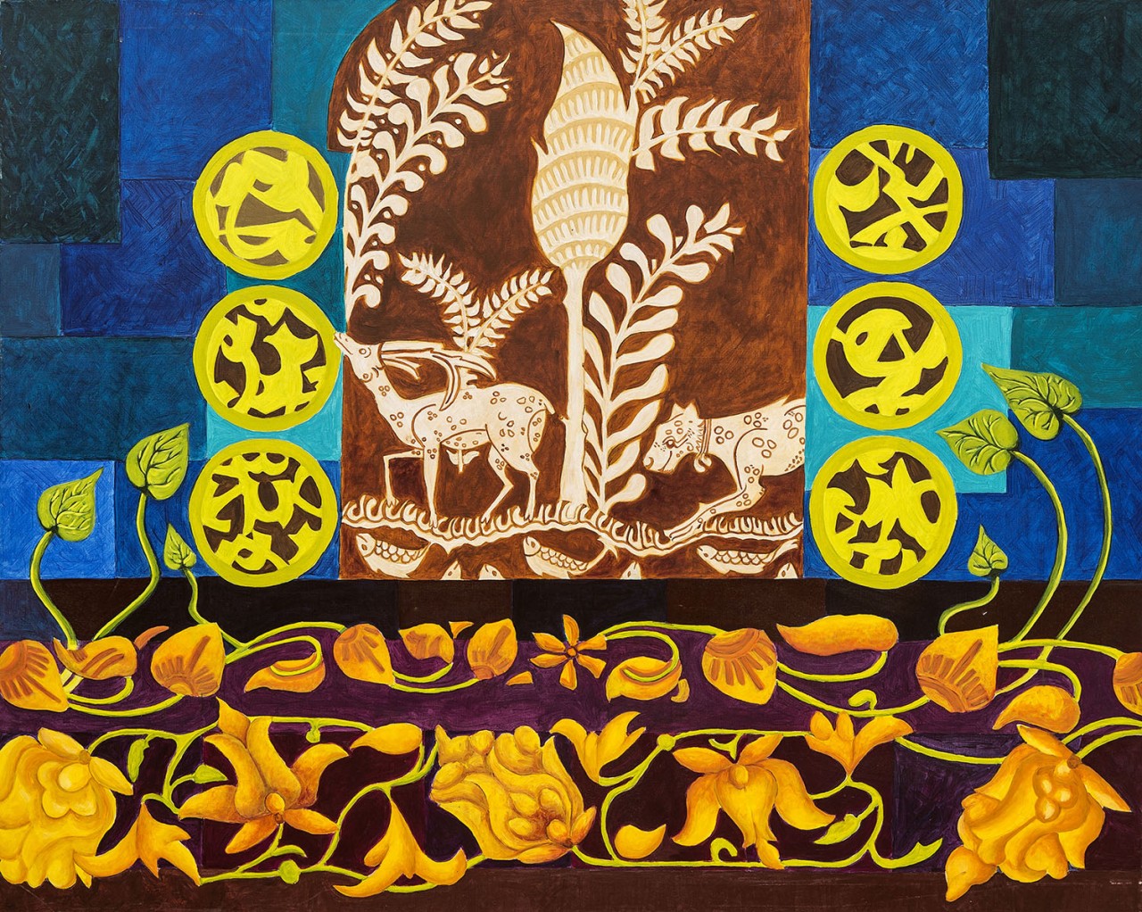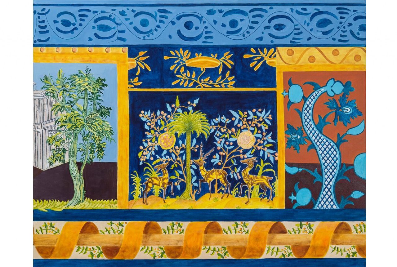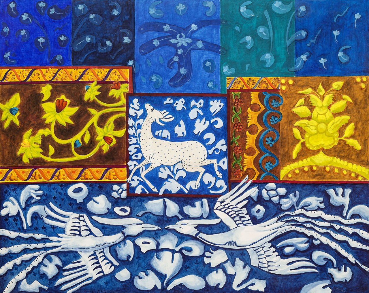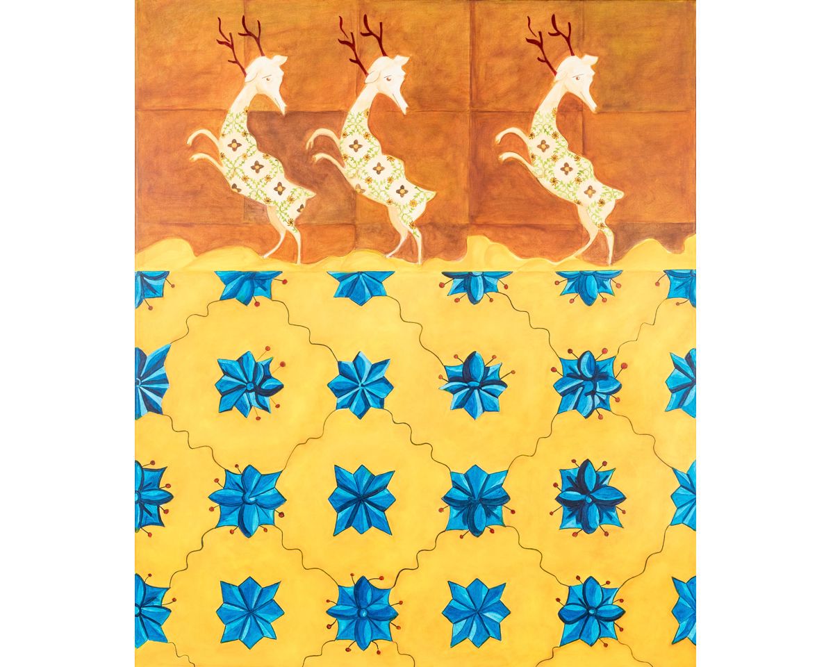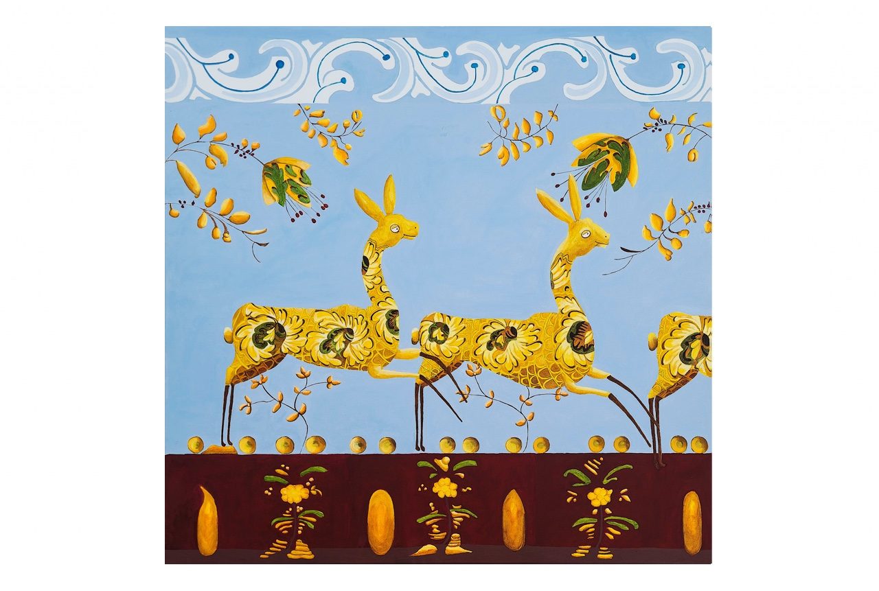 Three Gazelles on a Blue Background Acrylic on canvas, 90x90cm