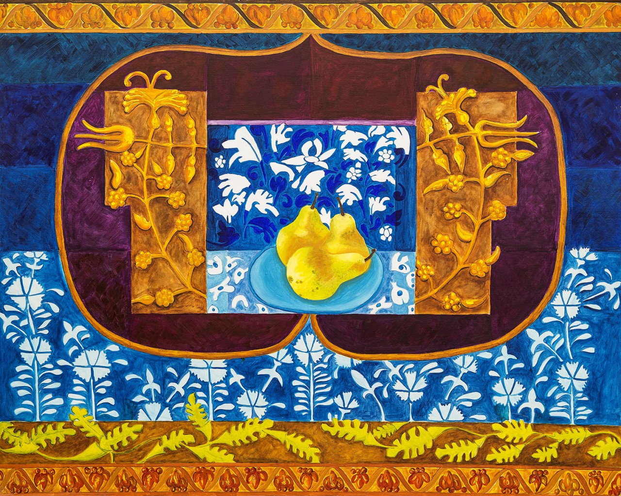 A Variation of Fruit and Leaves, 17th Century version Acrylic on canvas, 50x40cm