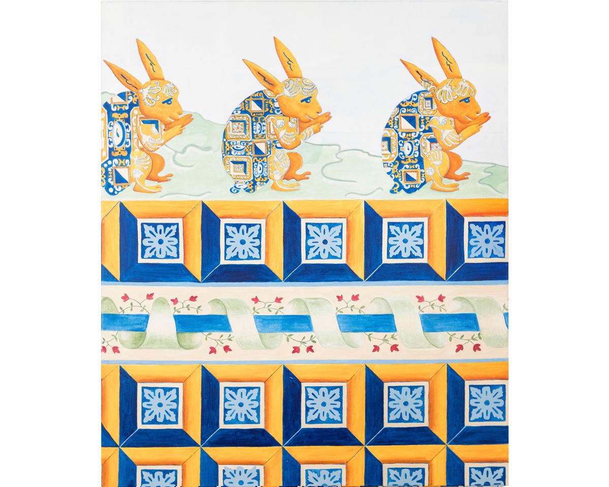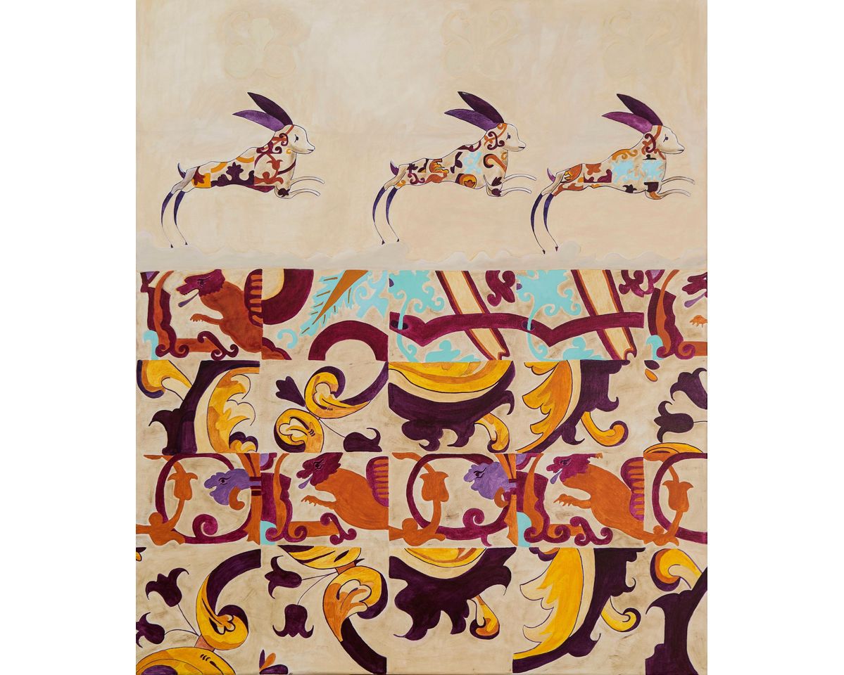 Rabbits and the 17th Century Dragon Tiled Acrylic on canvas, 120x100cm