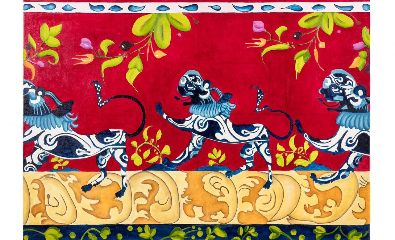 The Blue and White Lions Oil on canvas, 100x70cm