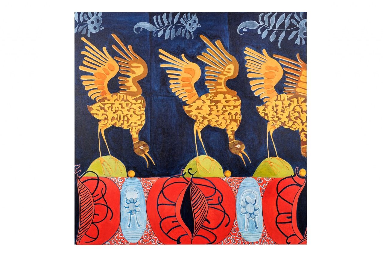 Birds on a Dark Blue Background Acrylic on Canvas, 90x90cm