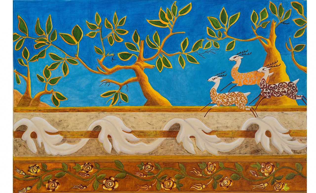 The Deer Chase Acrylic on canvas, 120x80cm